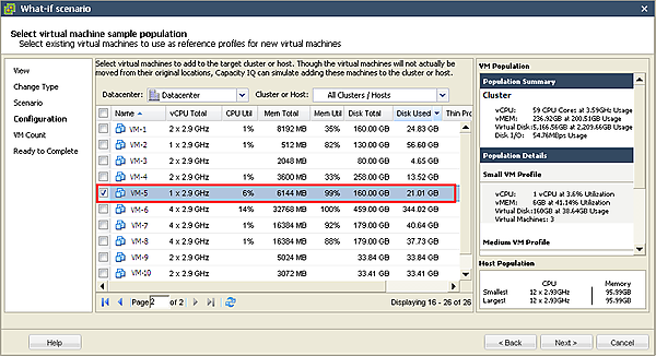 | 図1-5:[What-if scenario]ウィザードのVM一覧から選択(クリックで拡大) |