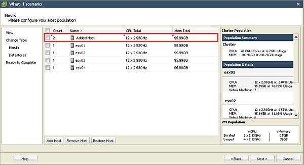 | 図4-4:[Added Host]行でESX/ESXiホストの台数とスペックを指定(クリックで拡大) |