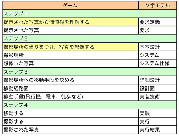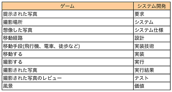 システム開発のプロセスを具体的に説明すると複雑になってきます。そのため、今回は写真撮影のゲームを例に説明することにしました。いかがだったでしょうか。プロセスには意味のあるつながりがあります。V字モデルやスクラムなどのプロセスモデルからは、工程のつながりが見づらい場合があります。写真撮影のゲームの例から、工程の意味とつながりを実感できたなら、意図することは果たせました。