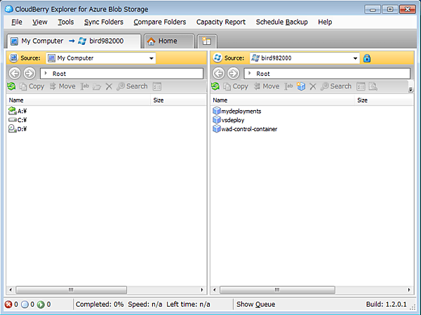 | 図6:CloudBerry Explorer for Azure Blob Storageトップ画面(クリックで拡大) |