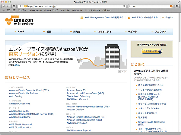 | 図1:AWSのWebサイト(クリックで拡大) |