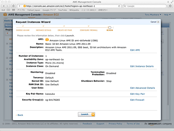 最後の画面で設定情報がすべて表示される。問題ないことを確認して、「Launch」ボタンをクリックする。