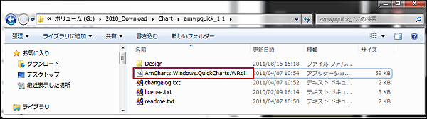 ダウンロードしたzipファイルを適当なフォルダーに解凍しておいてください。解凍すると中に「AmCharts.Windows.QuickCharts.WP.dll」が現れます。このDLLを後ほど使用します(図2)。