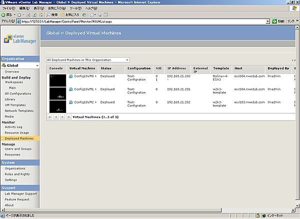 [1-4]左ペインで[Deployed Machies]をクリックします。現在、仮想マシンをデプロイしているコンフィグレーションの内容が表示されます。