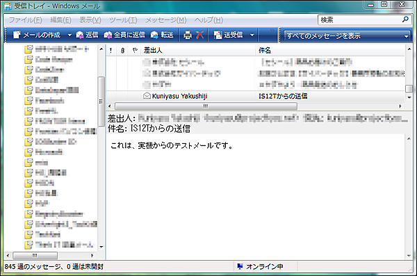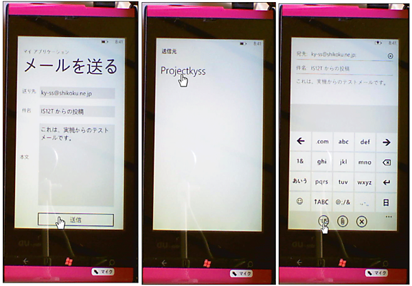| 図1:実機(IS12T)からメールを送信している(クリックで拡大) |