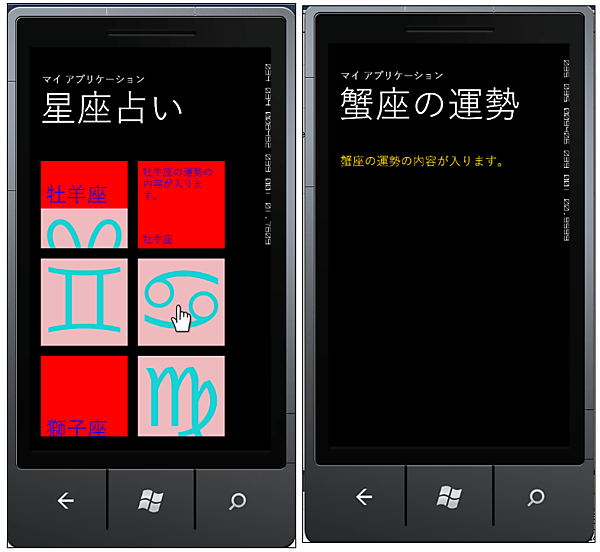「Windows Phone Toolkit - August 2011(7.1 SDK)」で追加されたHubTileコントロールを使って、「HubTileで星座占いを表示する」サンプルを紹介します。このプログラムはエミュレーターで動作します。特に実機は必要ありません。