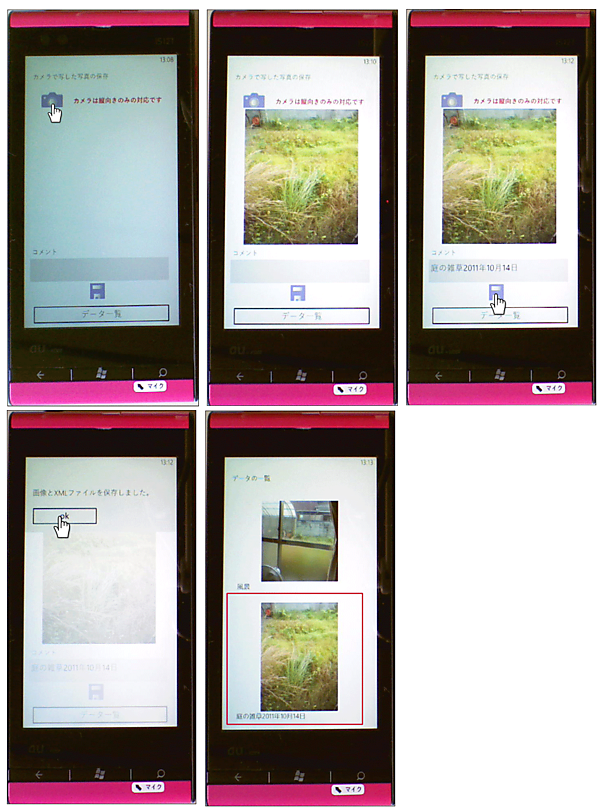 | 図2:カメラで撮影した写真を、コメントを入力して分離ストレージに保存する(クリックで拡大) |