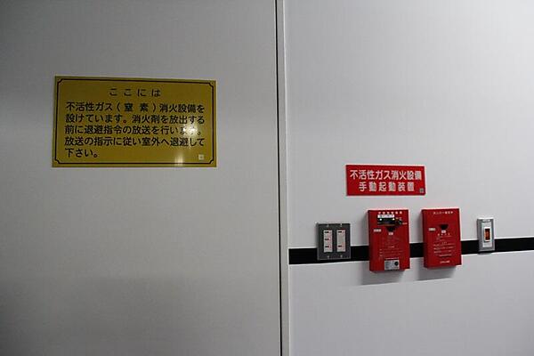 | [写真13]消火には不活性ガスを使う。水や消化器の消化剤でサーバーが損傷することを防ぐため。 (写真をクリックすると拡大表示します) |