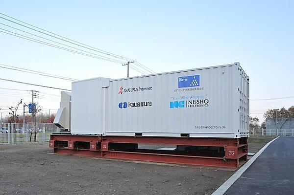 建物の外に置かれたコンテナ型データセンターでは、NTTデータ先端技術、河村電器産業、日商エレクトロニクスと合同でHVDC給電システムの実証実験を行っている。電流の直交変換の回数を減らし、LED照明を利用するなど、通常は60〜80%となってしまう電力効率を90%以上にできるという。よい結果が出れば、まだラックの入っていないゾーンで採用の可能性も。そうすればさらにエネルギー効率が向上する。