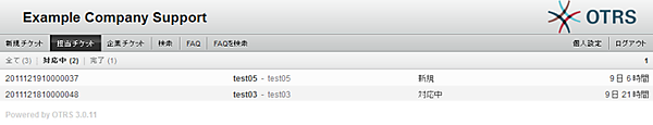 | 図3:ログイン後のOTRS画面(クリックで拡大) |