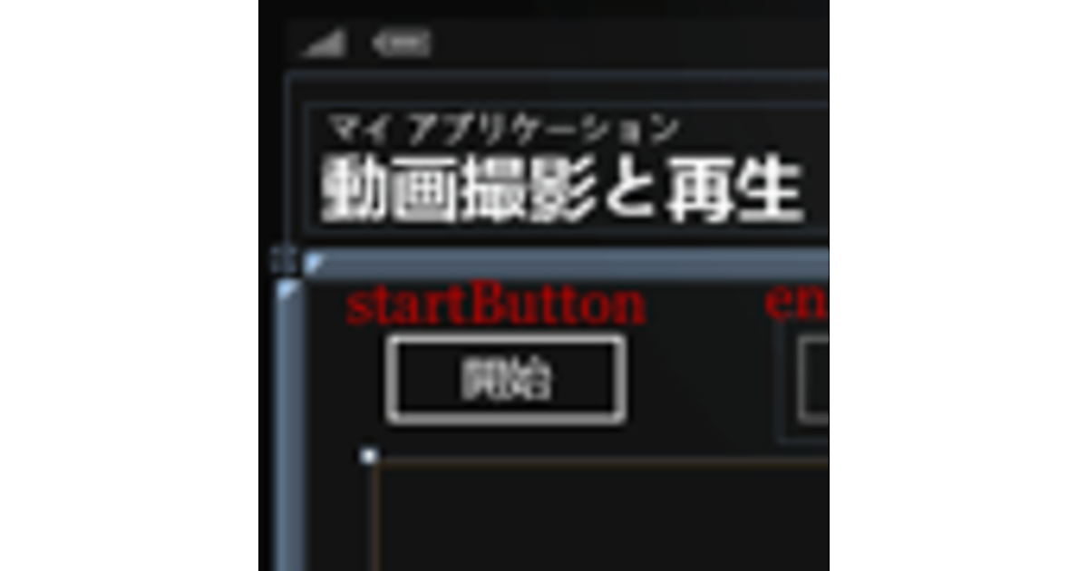 実機にプログラムをデプロイし、表示される[開始]ボタンをタップすると矩形内に被写体が表示されます。この時点で既に動画撮影モードに入っています。[終了]ボタンをタップすると分離ストレージ内にsample.mp4というファイル名で動画が保存されます。sample.mp4は固定のファイル名で、異なった動画を撮影しても同名ファイルで上書きされます。[再生画面へ遷移]ボタンをタップすると、動画を再生する画面に遷移します。遷移した画面では即動画が再生されます。[休止]で動画の再生が休止します。再度[再生]をタップすると途中から動画が再生されます(図1)。