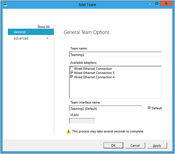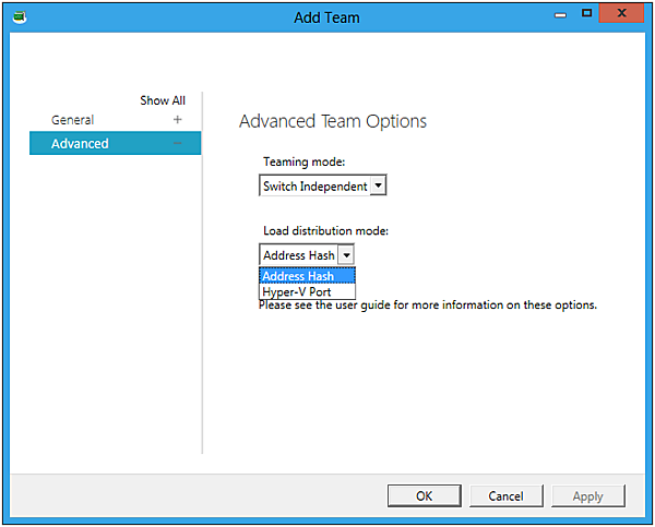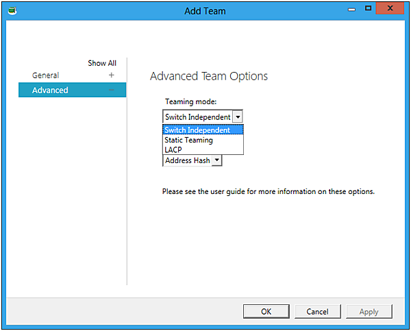 Teaming modeでモードを選択します。今回はSwitch Independentを選択しました。