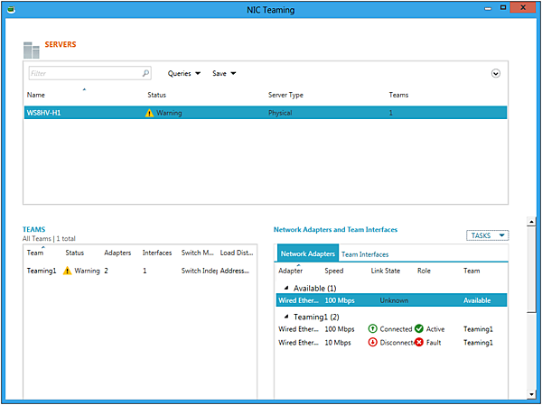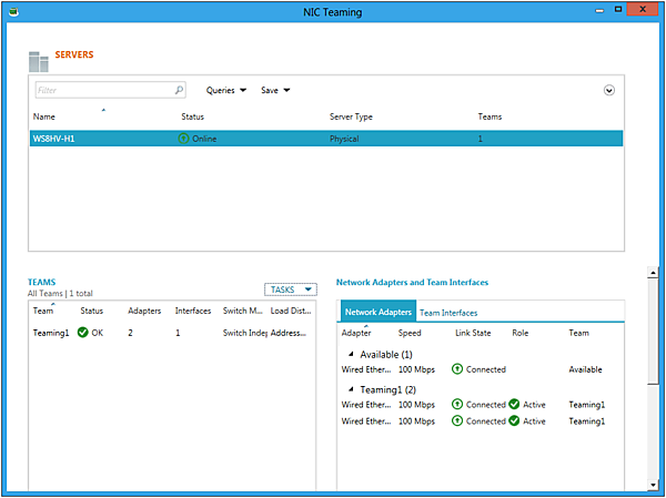 Network Adapters and Team InterfacesにもTeaming1が追加され、Teaming設定した各NICの状態が確認できるようになります。