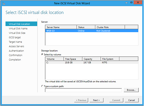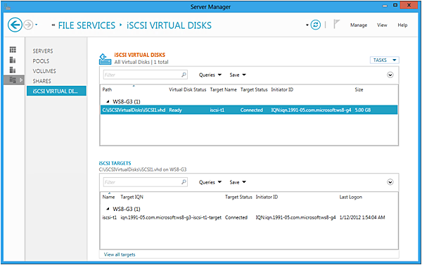 iSCSIターゲットについてはWindows Server 2008 R2でもMicrosoft iSCSI Software Target 3.3が公開されており、利用することが可能です。Windows Server 8では標準機能として搭載され利用することが可能です。