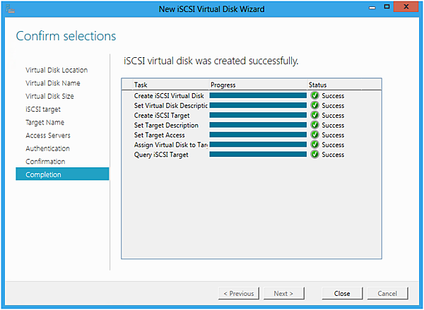 以上で第1回は終わりです。今回は「Server Manager」での管理、「NIC Teaming」でネットワークの冗長、「iSCSI Target」でSANの構築、これら3つの基本的な設定手順を紹介しました。Hyper-Vと組み合わせることで様々な利用形態に合わせた構築方法が考えられ今後がたのしみです。