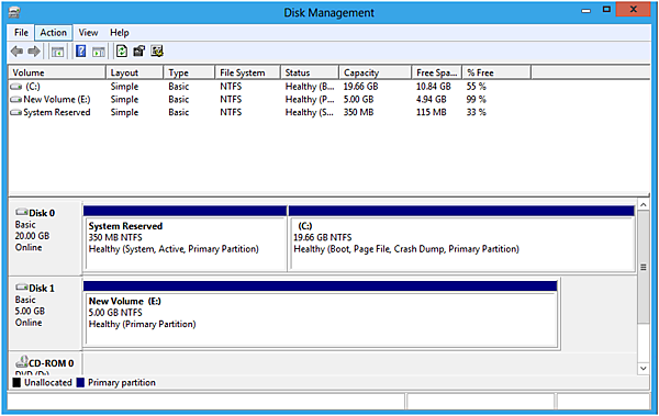 コントロールパネルよりDisk Managementを開きます。ここで、登録したiSCSIターゲットのバーチャルディスクがマウントされています。