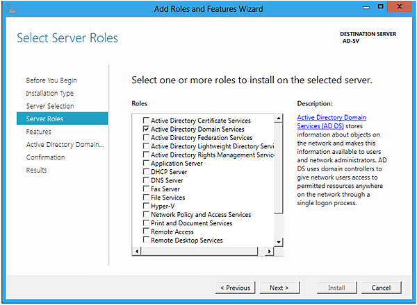 [Active Directory Domain Service]にチェックが入っていることを確認し、ウィザードを進めていきインストールを開始します。
