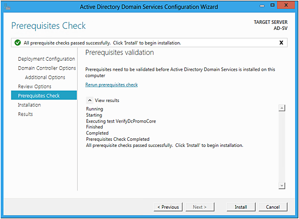 初期設定前の設定が正しく行えるか最終チェックが行われます。[Install]で設定が開始されます。