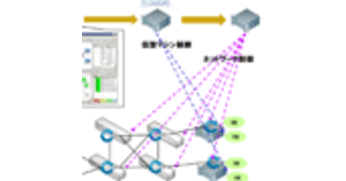 | 図1:OpenFlowプロトコルを利用してスイッチ間のトポロジー情報を把握するイメージ |