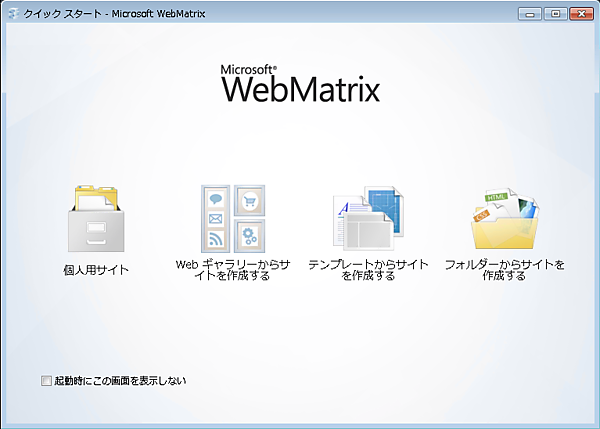 画面5:WebMatrix-スターターサイトの選択(クリックで拡大)
