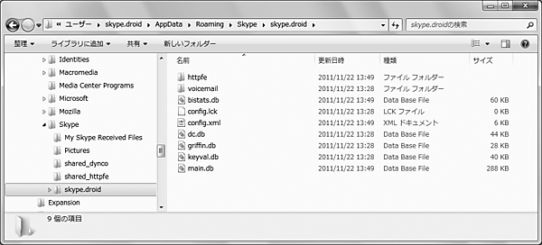 | 図1-2:ユーザディレクトリ内のSkypeファイル(クリックで拡大) |