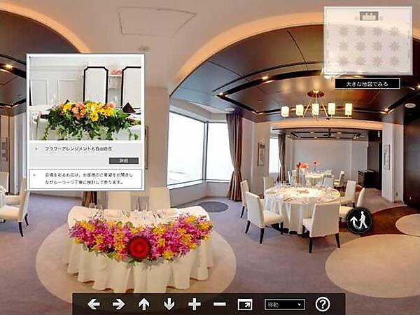 「PanoPlaza」は、360度のパノラマ写真を活用して店舗や施設などをバーチャルに訪問できるアプリ。写真内に動画やテキストを付与し、画面をタップするとポップアップで詳しい情報などを表示できる。バーチャル空間を自由に歩き回れるため、不動産物件や結婚式場などの様子を紹介する用途に向く。ECサイトにPanoPlazaを埋め込むことで、サイト利用者はあたかも店舗で買い物をしているかのように商品を購入できる。
