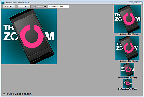 - (1)「Windows Phone Icons Maker」で、4種類の画像を一気に作成する