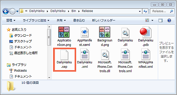 | 図15:Releaseサブフォルダ内にxapファイルが作成される(クリックで拡大) |