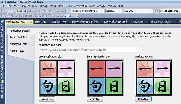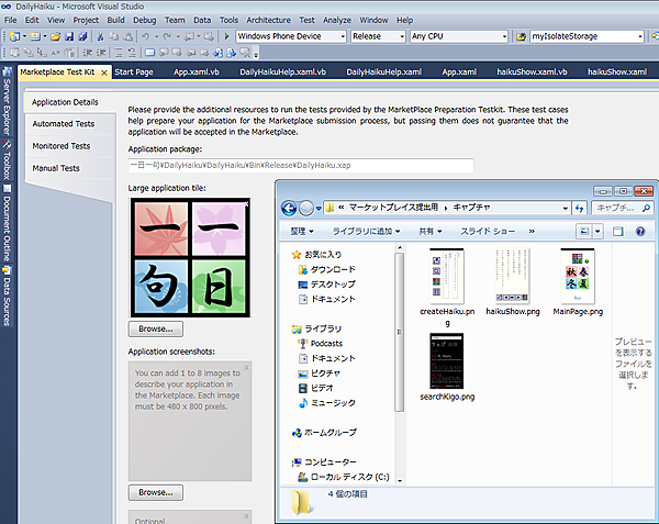 申請時には、このReleaseサブフォルダ内のxapファイルを指定するようになります。