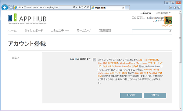 APP Hubの使用条件の「同意する」にチェックを付けます(図32)。