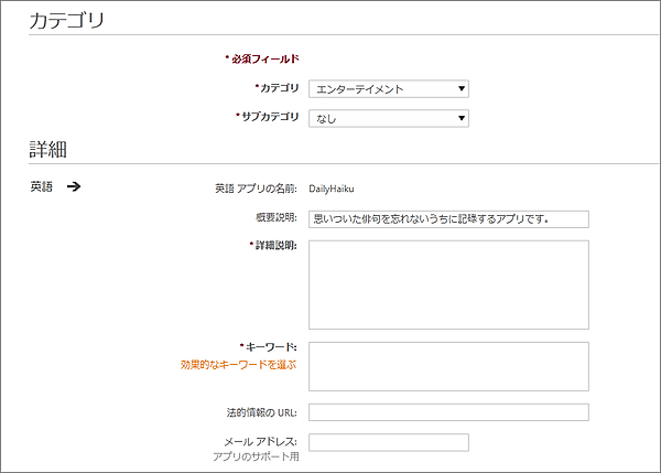 | (左上より)図38:カテゴリを選択する/図39:あらかじめ用意していたテキストを [Ctrl+C」[Ctrl+V」で、コピー&ペーストする/図40:概要説明を入力したところ (それぞれクリックで拡大) |