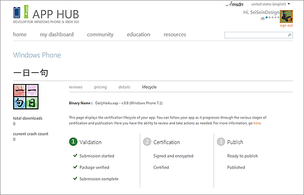 →参照:Windows Phone Marketplace の FAQ / 証明書(msdn)