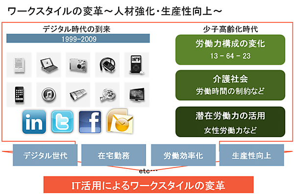 | 図4:デジタル時代と少子高齢化社会とワークスタイルの変革(クリックで拡大) |