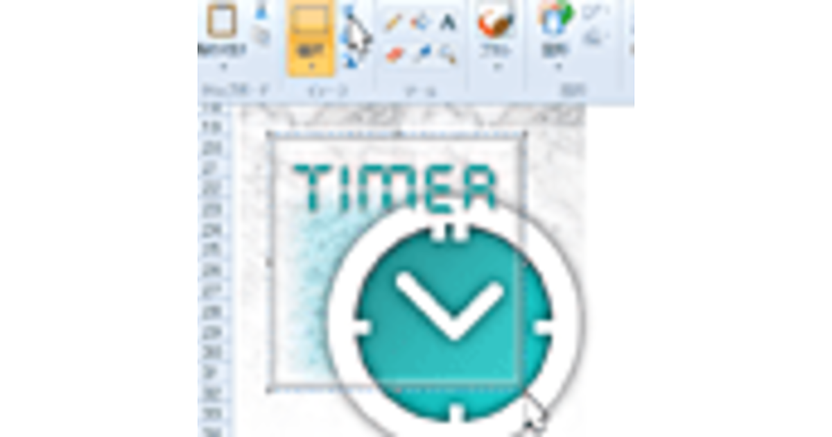この上にMicrosoft素材集の時計の画像ファイル(IW069.png)を読み込み、プレス&ドラッグで拡大縮小してレイアウトします。必ずしも素材の全てをタイルの中におさめる必要はありません。コンセプトによっては、もっと大胆に切り取ってもかまいません。