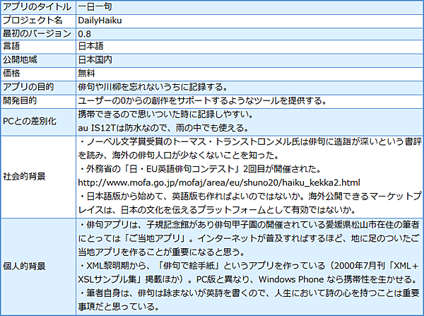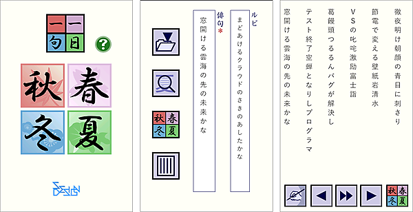 | 図1:最初に解説する俳句アプリ「一日一句 Ver.0.8」(クリックで拡大) |