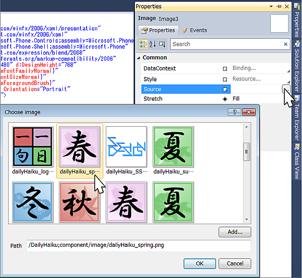 | 図9:それぞれのImageコントロールのプロパティを開き、Sourceに画像を指定する(クリックで拡大) |