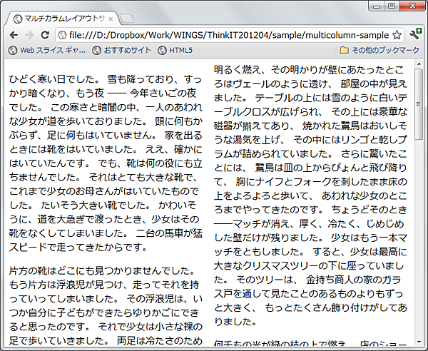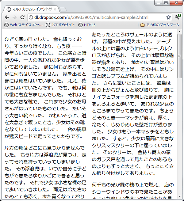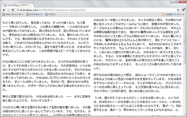 columns-countプロパティを使ったサンプル(multicolumn-sample2.html)
