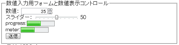 <legend>数値入力用フォームと数値表示コントロール</legend>