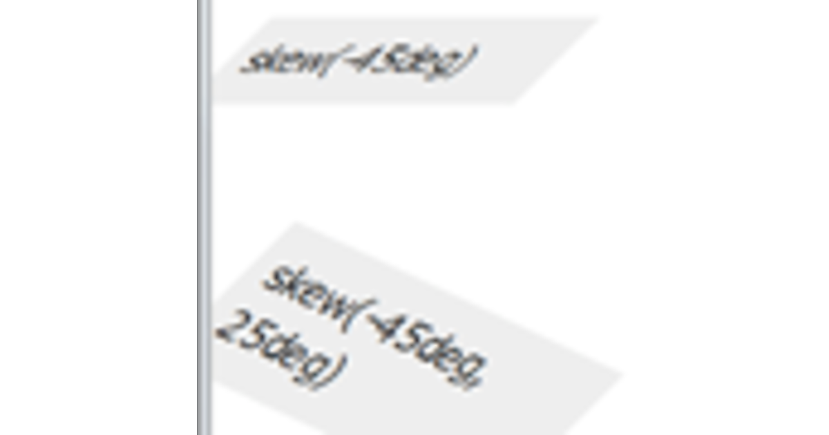 | skew | ゆがみ。ゆがめる角度をdegを付けて指定する |