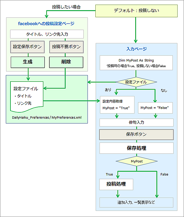 | 図4:facebookへの投稿設定の流れ(クリックで拡大) |