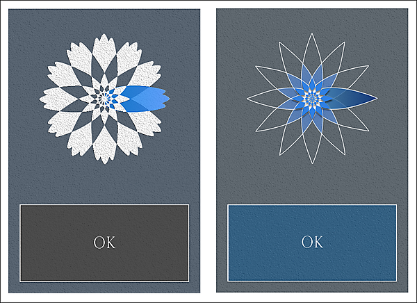 ロゴの元になっている結果表示ウィンドウの花の絵は数種類作成してみて、傾きを指している方向が分かりやすい、シンプルな形のものを採用しました(図7)。
