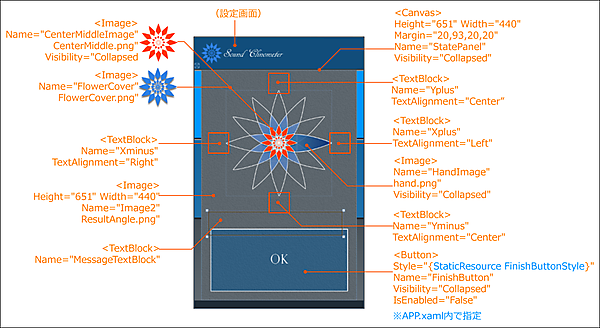 結果表示ウィンドウのレイアウト(MyClinometer.xaml)