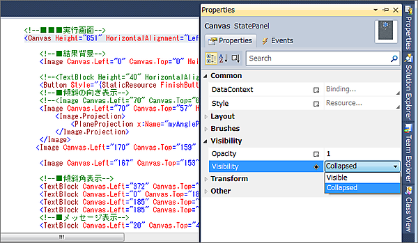 | 図14:Visibilityプロパティに「Collapsed」を指定して非表示状態にしておく(クリックで拡大) |