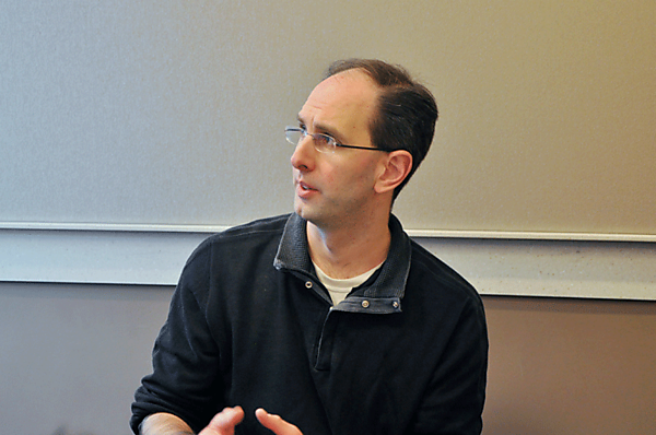 | | 左:ミーティング前の様子 右:登場したScott Guthrie氏 |