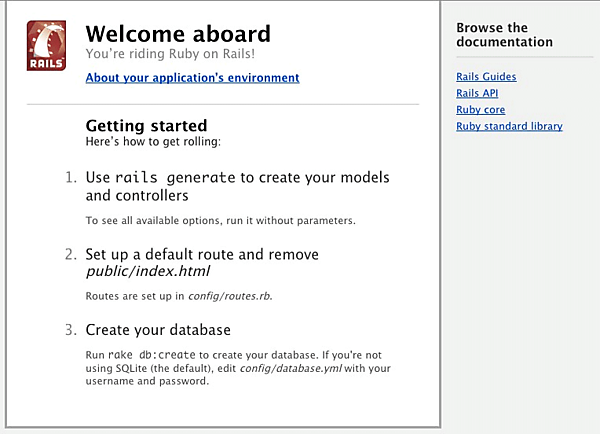 以上の手順を終えた後、再度 bundle exec rails server でサーバを立ち上げ、http://0.0.0.0:3000/ にアクセスすると、図のようなサンプルアプリケーションが立ち上がるはずです。次のページからはこのアプリケーションをHerokuにデプロイしようと思います。