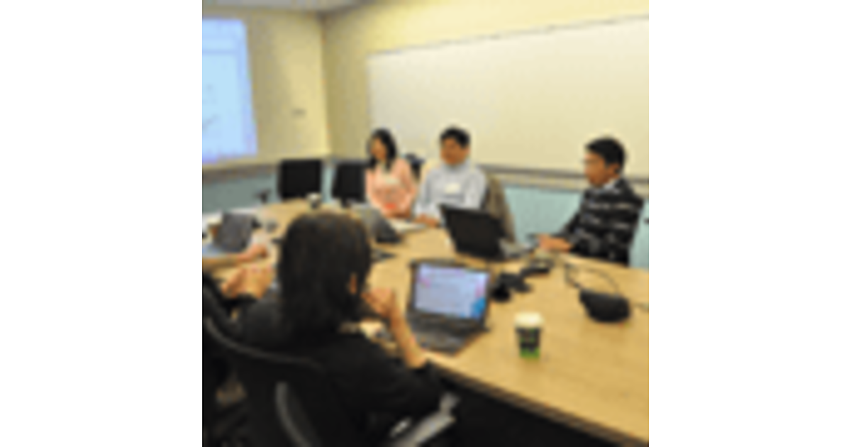 ![]() | ![]() | 左:ミーティング前の準備 右:アメリカでの仕事環境を話してくださった成本氏 |