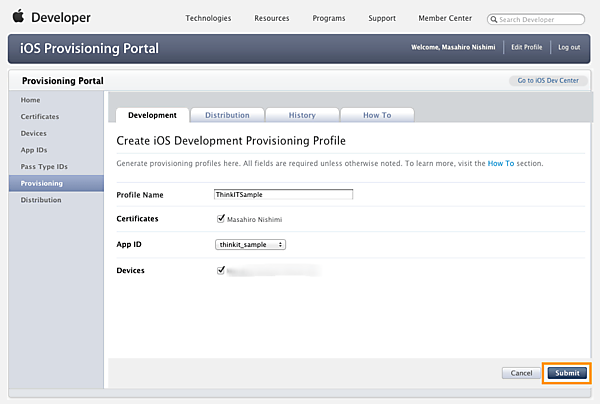 | 図11:Provisioning Profileの作成(クリックで拡大) |