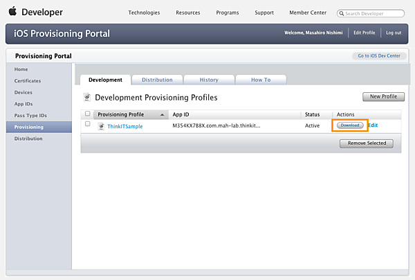 | 図12:Provisioning Profileにダウンロード(クリックで拡大) |