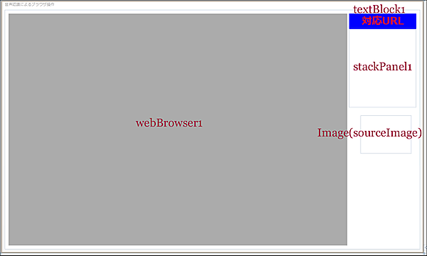 ツールボックスからデザイン画面上にWebBrowser、TextBlock、StackPanel、Imageコントロールを1個ずつ配置します。