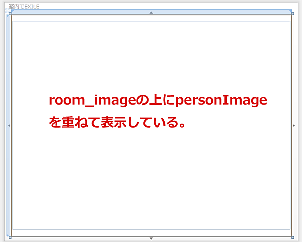 (1)Nameがroom_imageのImageコントロールのSourceプロパティに、Room_Bitmapプロパティをバインドしています。この名前はVBコード内で定義したプロパティ名です。Widthには640、Heightには480と指定しておきます。